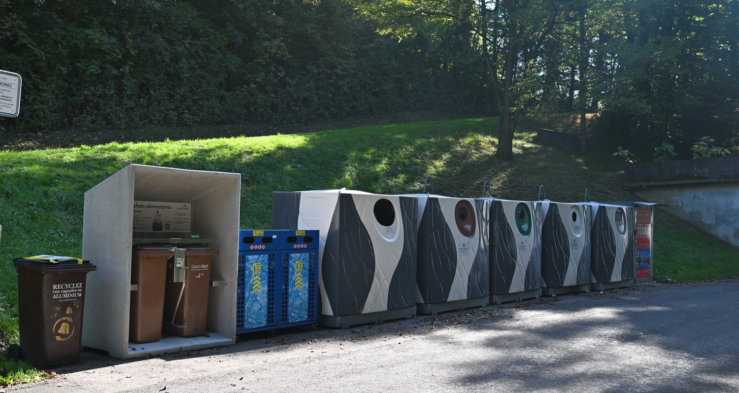 Dix points de collecte des déchets librement accessibles permettent de déposer la plupart des déchets: ordures ménagères (sacs blancs), verre, PET, aluminium, huiles, piles, etc.