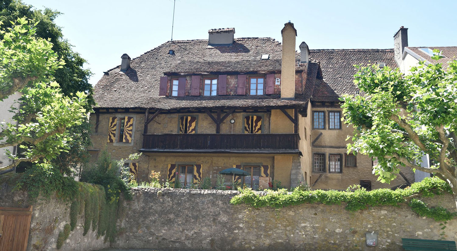 - au sud, une maison qui a aussi appartenu aux nobles Mestral de Lutry, puis aux nobles de Prez. Elle aussi a dû avoir une façade gothique contemporaine de la première.