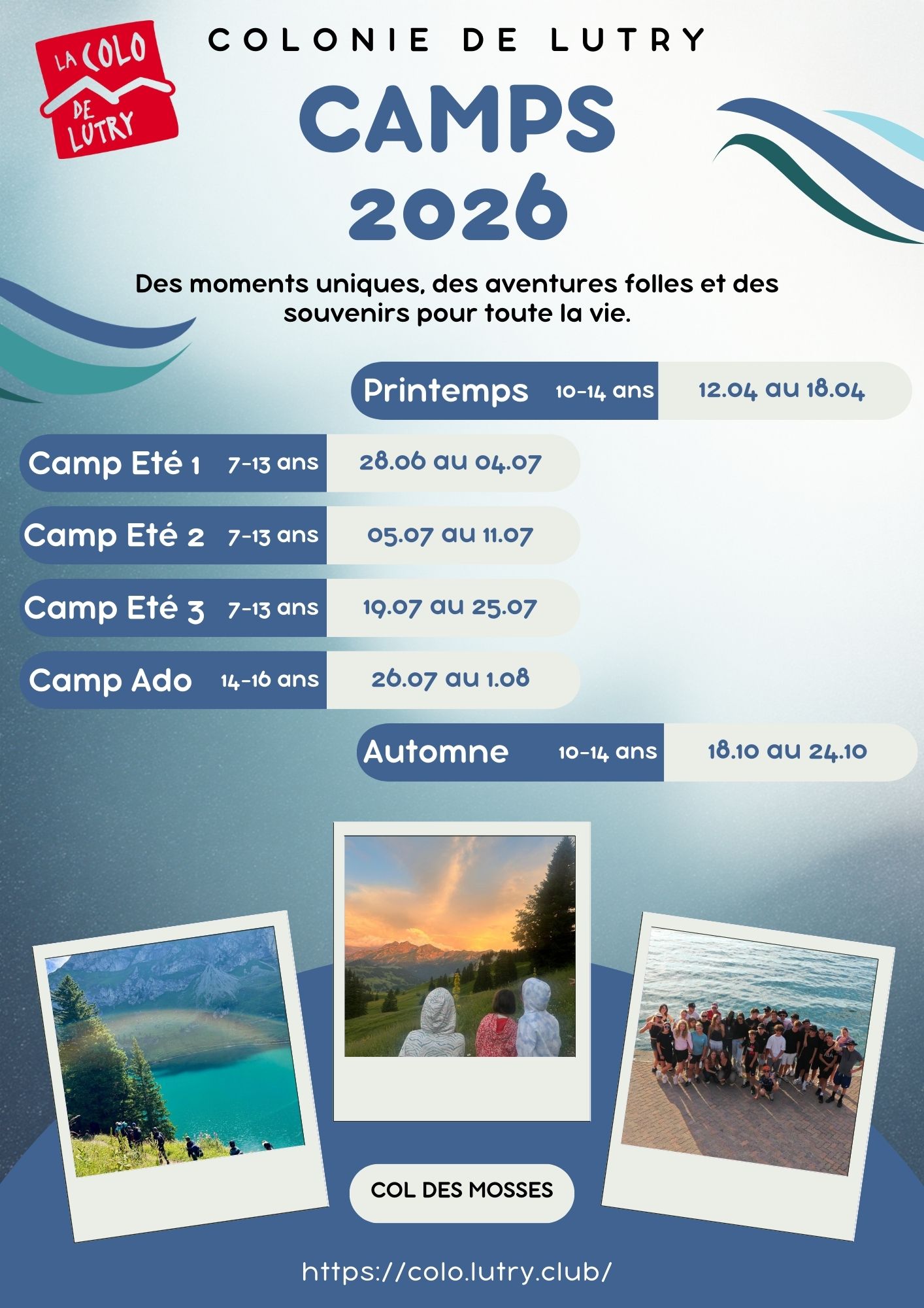 La Société de la Colonie de Vacances de Lutry organise chaque année une série de camps d'été dans son chalet du Col des Mosses pour les enfants de 7 à 16 ans. Au programme: animations variées et excursions.