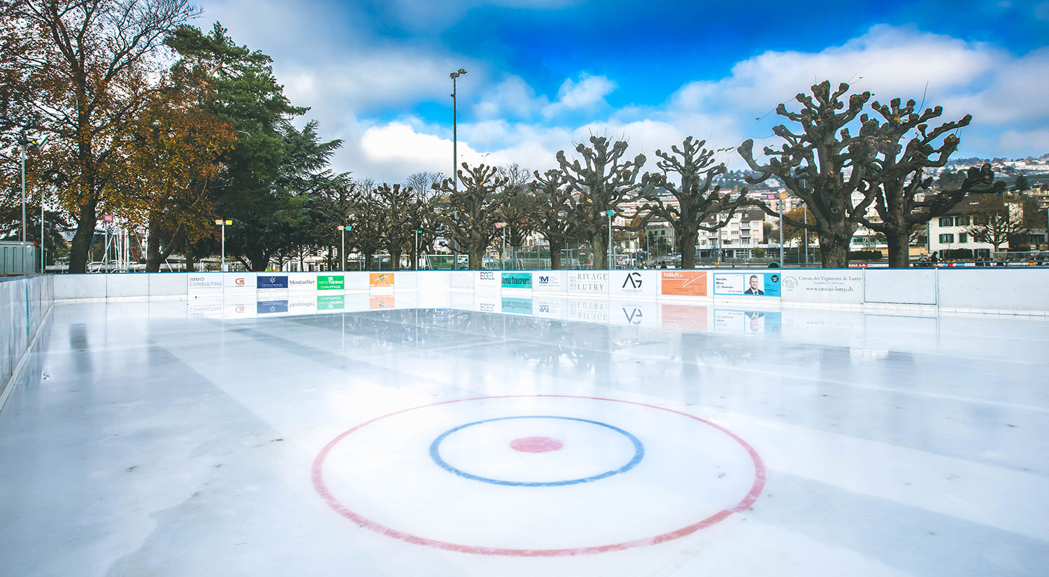 Toujours installée au bord du lac, la patinoire de Lutry vous accueille pendant la période hivernale sur le terrain de beach-volley, le long du terrain de football du Grand-Pont.